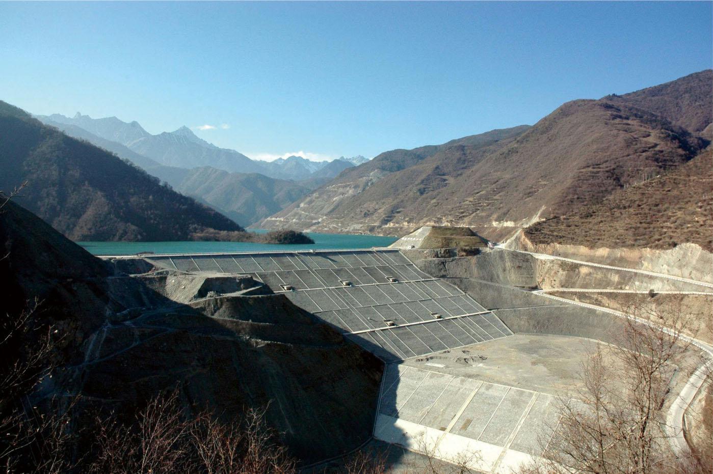 사천 Shuiniujia 수력 발전소 자갈 흙 코어 벽 암석 채우기 댐, 최대 댐 높이 106미터, "Tianfu Cup" 금메달 획득